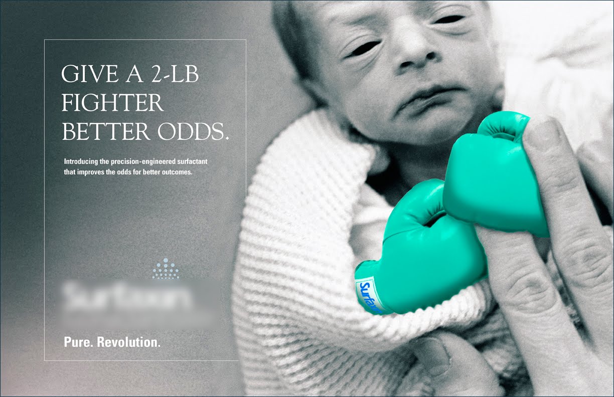 Premature birth is an incredibly stressful experience for families and healthcare providers alike. Our goal was to convey hope and strength through both copy and visuals. I initially developed the concept line, “Give a Two-Pound Baby a Fighting Chance.” My writing partner evolved it to “Give a Two-Pound Fighter Better Odds.” Our creative director and art director took it further, envisioning a striking image of tiny boxing gloves on a premature baby’s hands—symbolizing resilience and the life-saving support this treatment could provide.